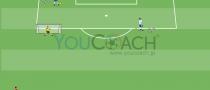20x30 mのグリッドのライン上にゴールを設置する。ゴールの横に図のようにサーキットを作る(図1): 3つコーンを1m間隔に置く。最後のコーンから2mの所にマーカーを2つ置く。マーカーから3m離れた所にミニゴールを置く。...