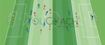 - 両チームともボールを奪ったら素早くオープンスペースに走り込む