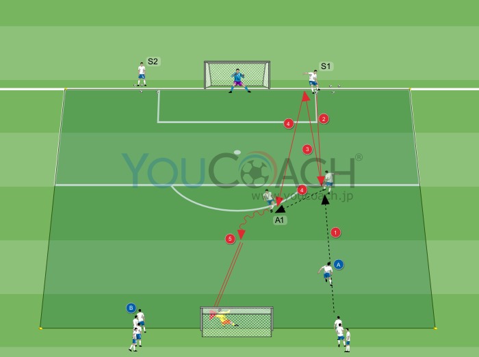 - S1とS2は、味方がシュートしやすい精度の高いパスを送ること。