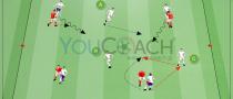 - コーチが”バックギア”と叫んだら、子供たちは180°方向転換して、ボールドリブルを続けます。