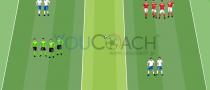- ボール保持者がよりプレーしやすくなるために、プレイヤー1人1人がより頻繁にマークを外す動きを行うようにさせる。このメニューは、プレイヤーにトライアングルの形成をするよう意識させるには効果的なトレーニングになっている。チームメイトが行うマークを外す動きに応じてその都度状況判断を行わなければいけないので、このトレーニングは認識的な能力が問われるものとなっている。