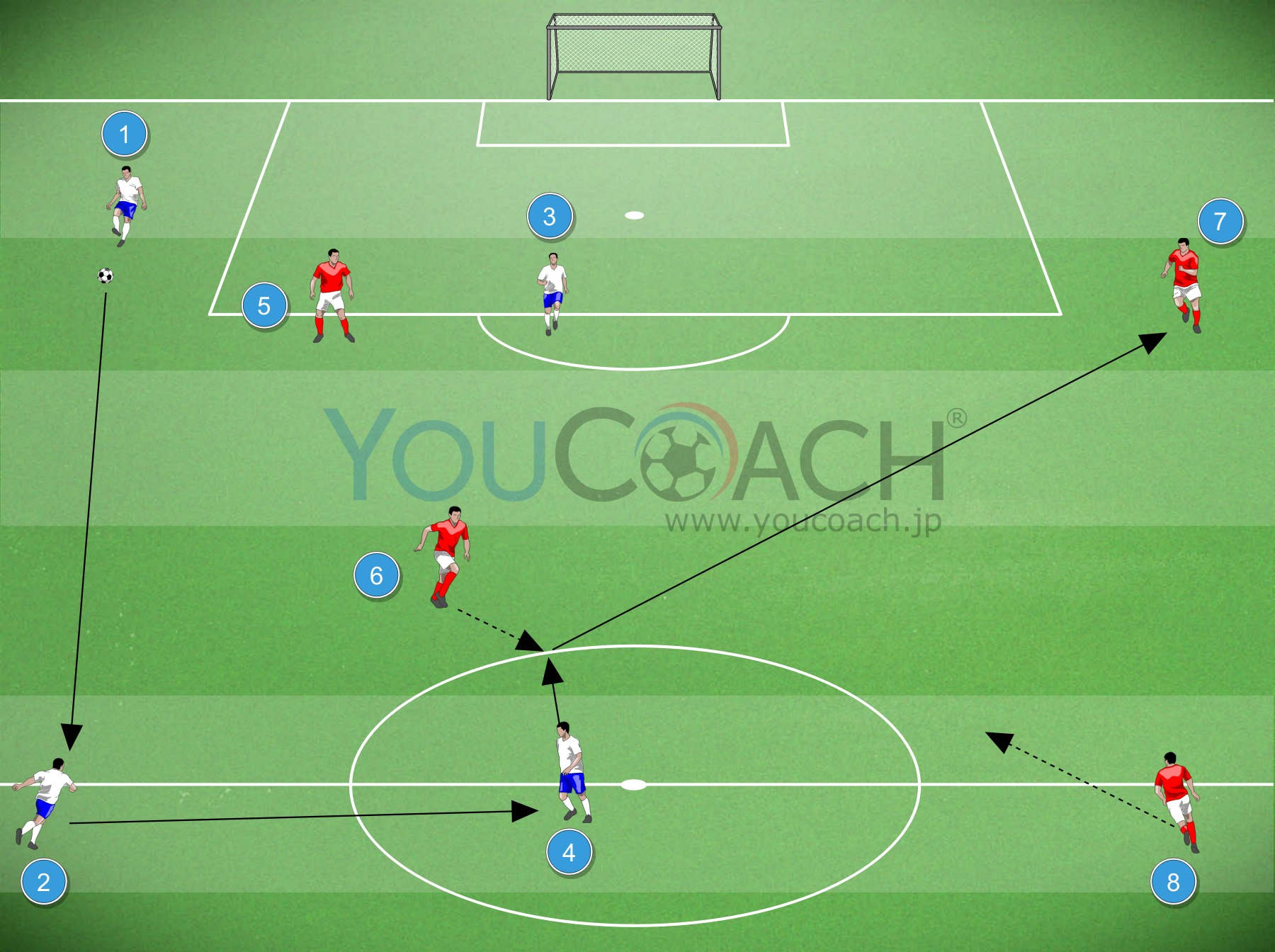 - 6番からスタートして、仲間の5番へパスをする