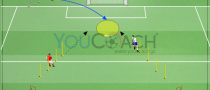 マークを外す能力や、ディフェンスの局面でいえばマークする能力と相手のボールを奪うためのポジショニング力を磨くための1対1もしくは1対2のプレー状況の中で、相手を抜き去るドリブルや勝負する能力を高めましょう。このトレーニングは素早いパス交換とフィニッシュの為の"出して動く"というシチュエーションの関連性を理解し適用するために有効です。