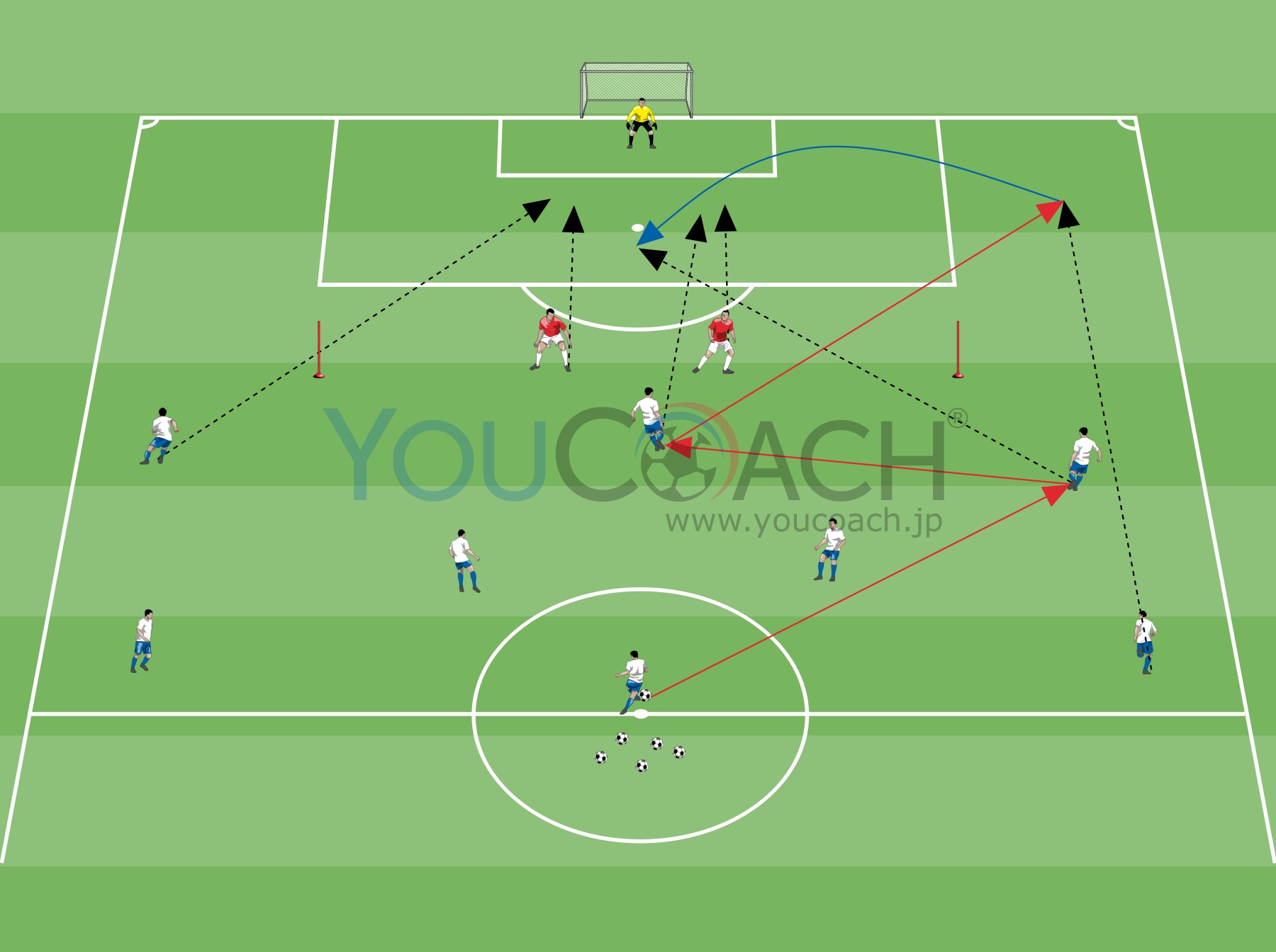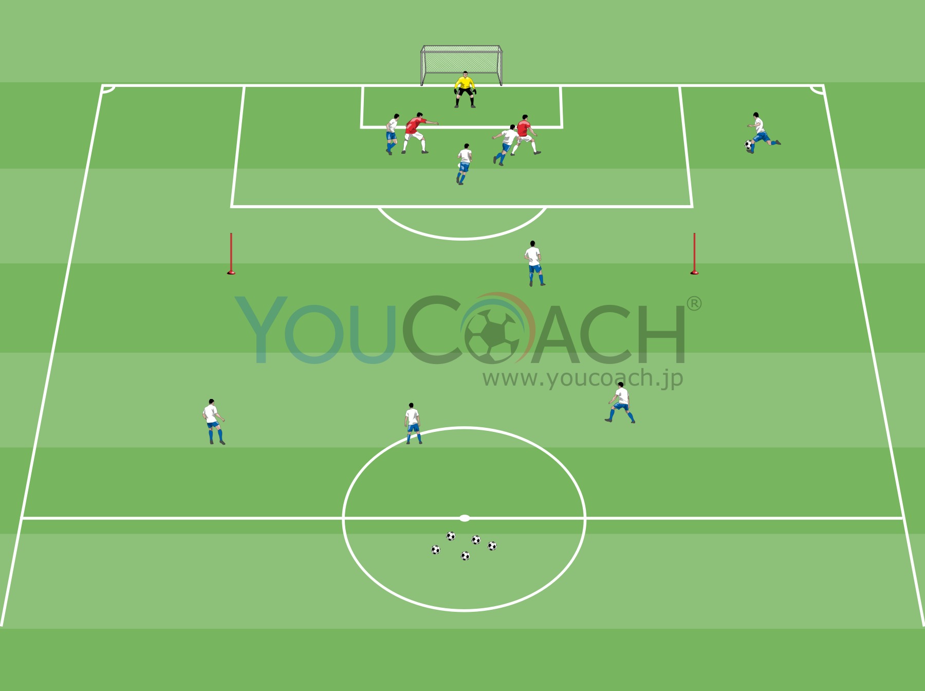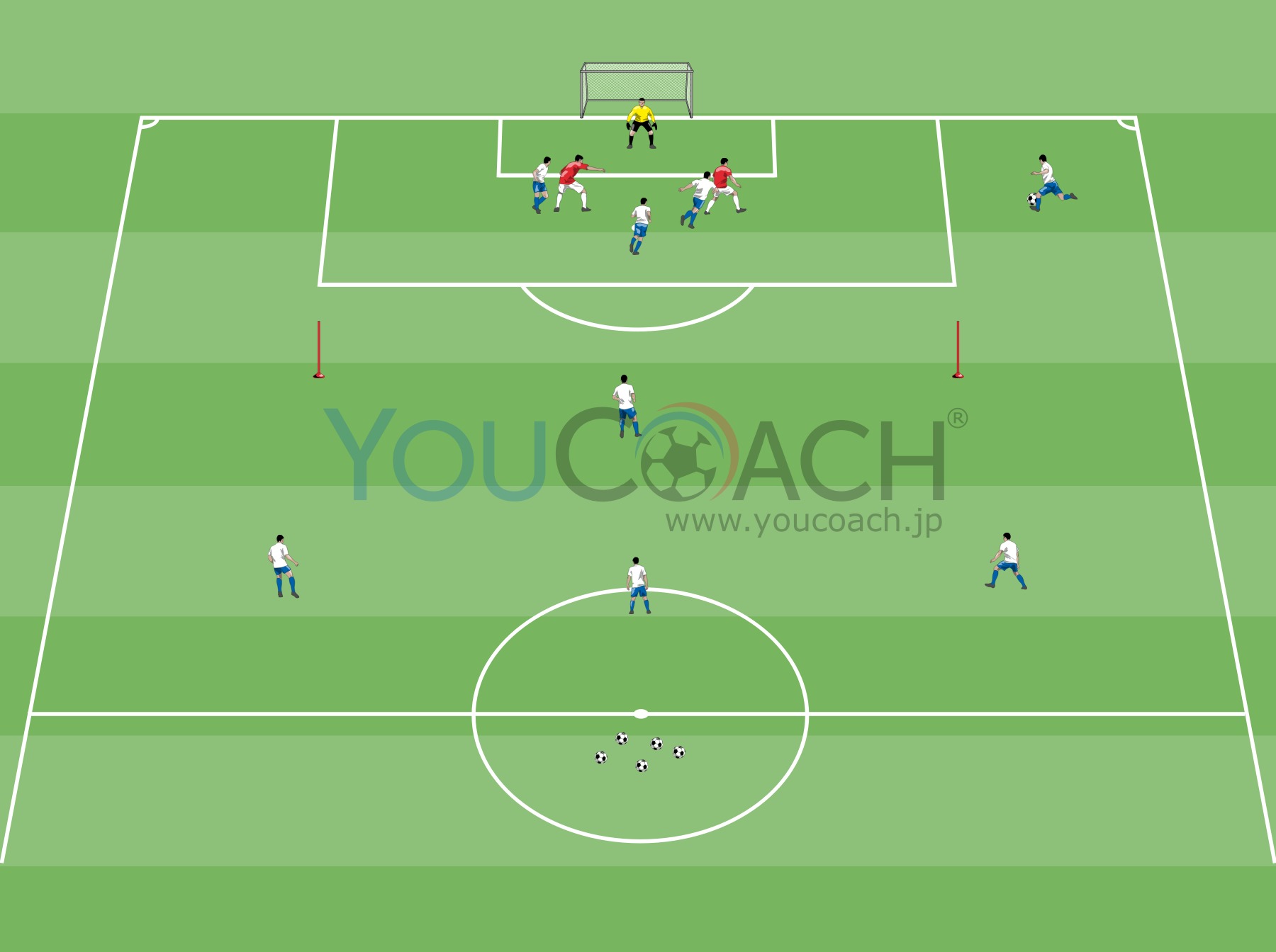 - センターバック2人(異なる色のビブスを着けて)