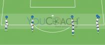 - コーチはピッチ外でボールを持ってスタンバイ。コーチがペアの番号を指定したらボールをピッチ内に投げ入れてゲーム開始。番号の指定は自由。指を使ったり、口頭で合図しても構いません。