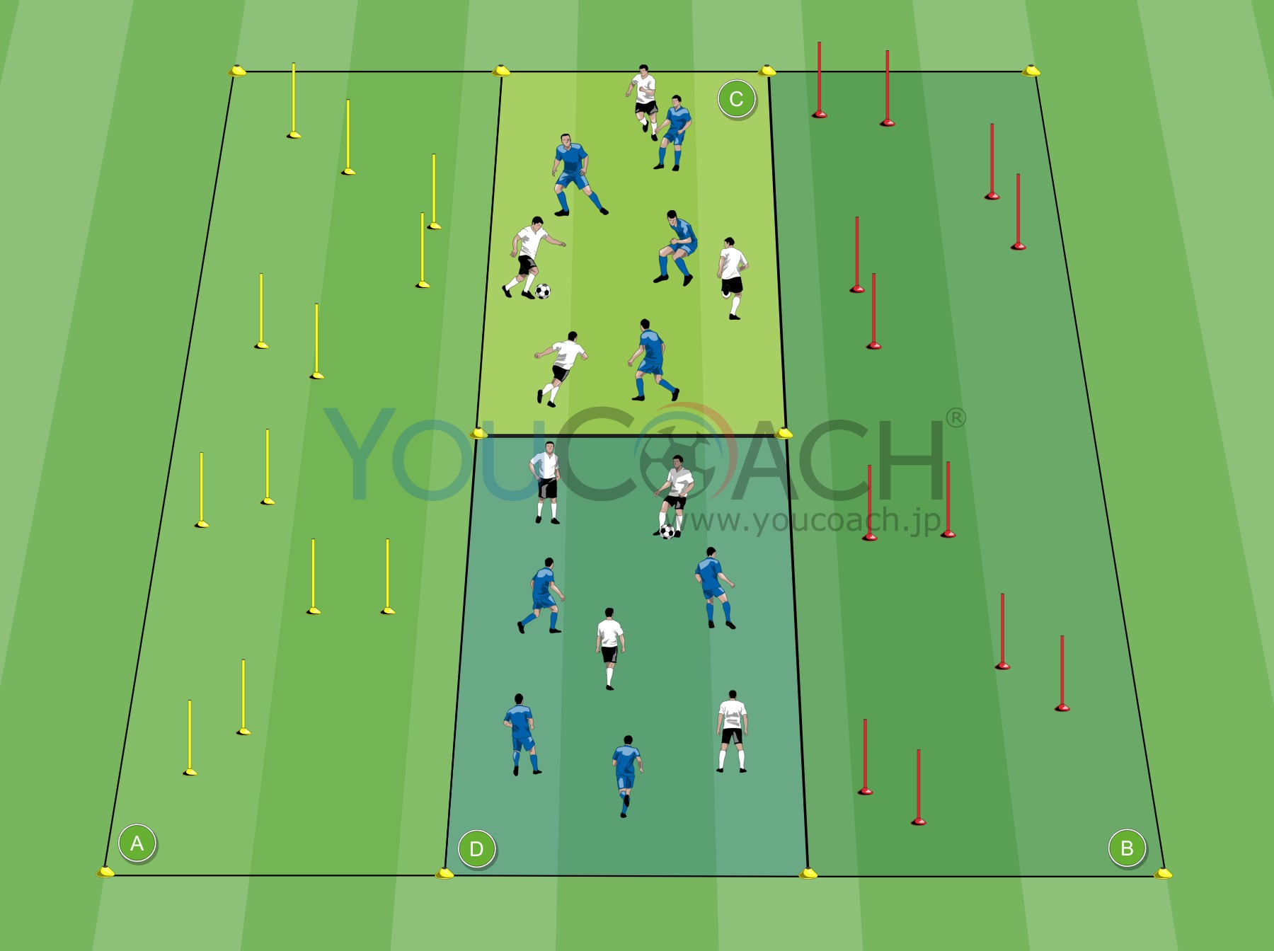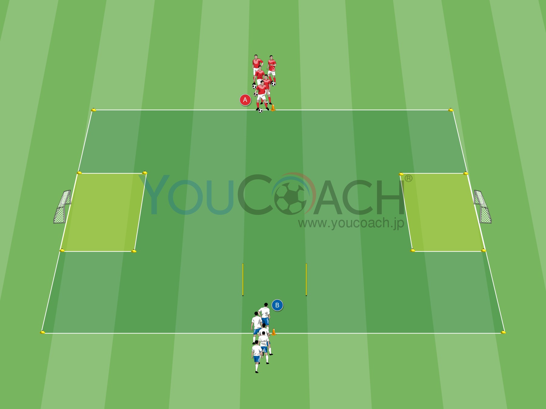 ボールポゼッション - ポゼッションからのゴール、2つテーマを加えた試合形式トレーニング -