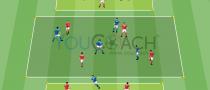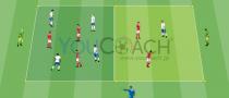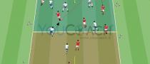 ディフェンスを行うと同時にシュートまで持ち込む戦術を意識したテーマ形式トレーニングです。 |