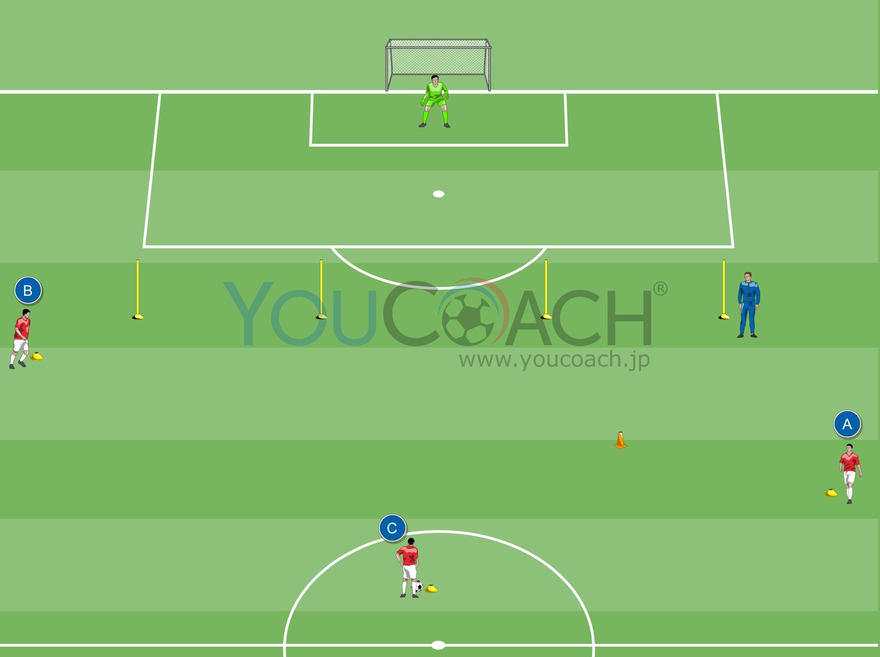 ボールポゼッション - ゴールゾーンまでたどり着くために相手ディフェンスを広げさせる -