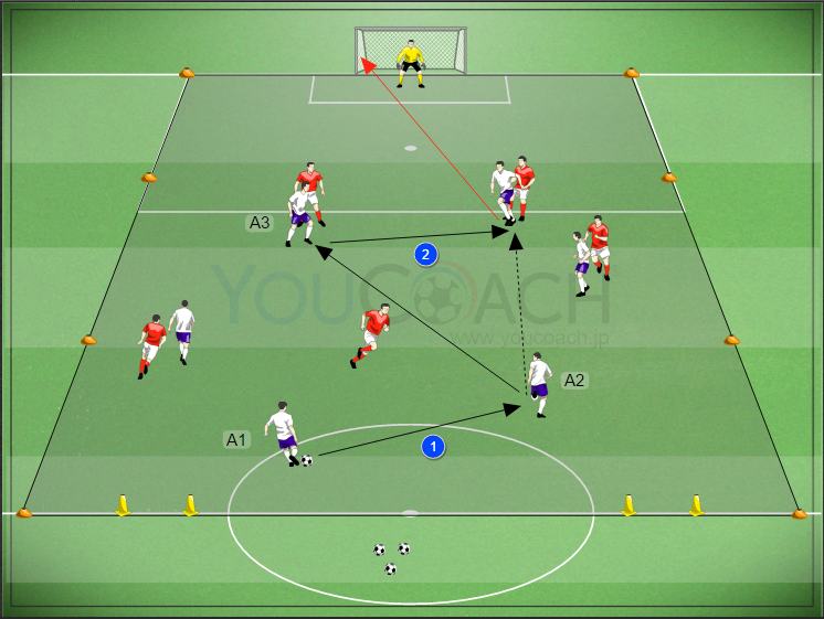 4つのゾーンで3 対 2のボールポゼッション