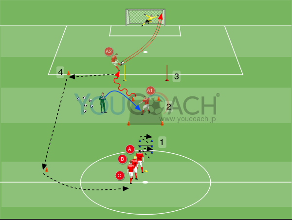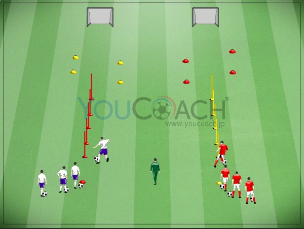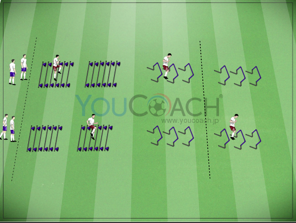 スピードに乗った状態でボールを運ぶ - 持久力、シュート、ボール運びを強化するスラロームレース -