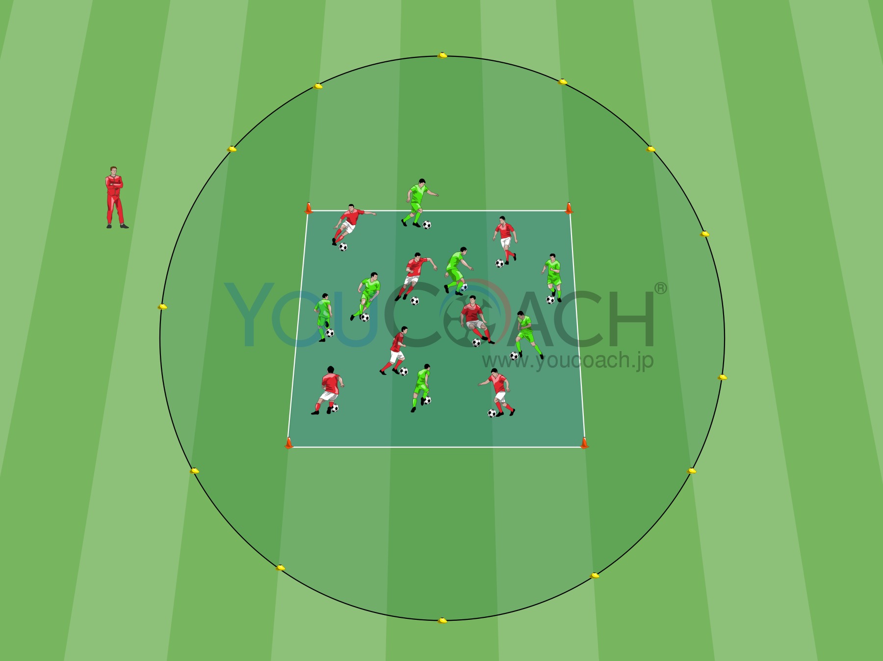 ボール扱い - 素早いスプリントとボール運びを鍛えるユースカテゴリー向けのトレーニングメニュー。 -
