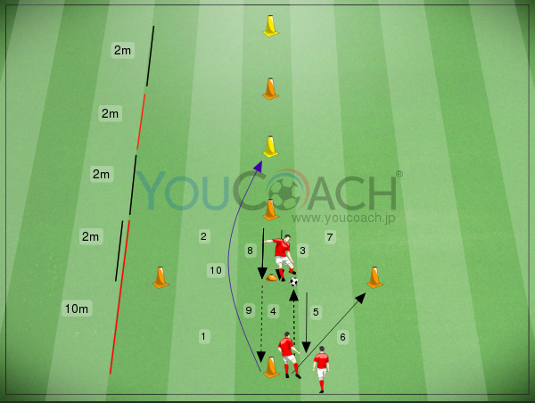 近い距離からの枠内シュート - 全速力のスプリントの後にエリア内でシュートを放つトレーニング -