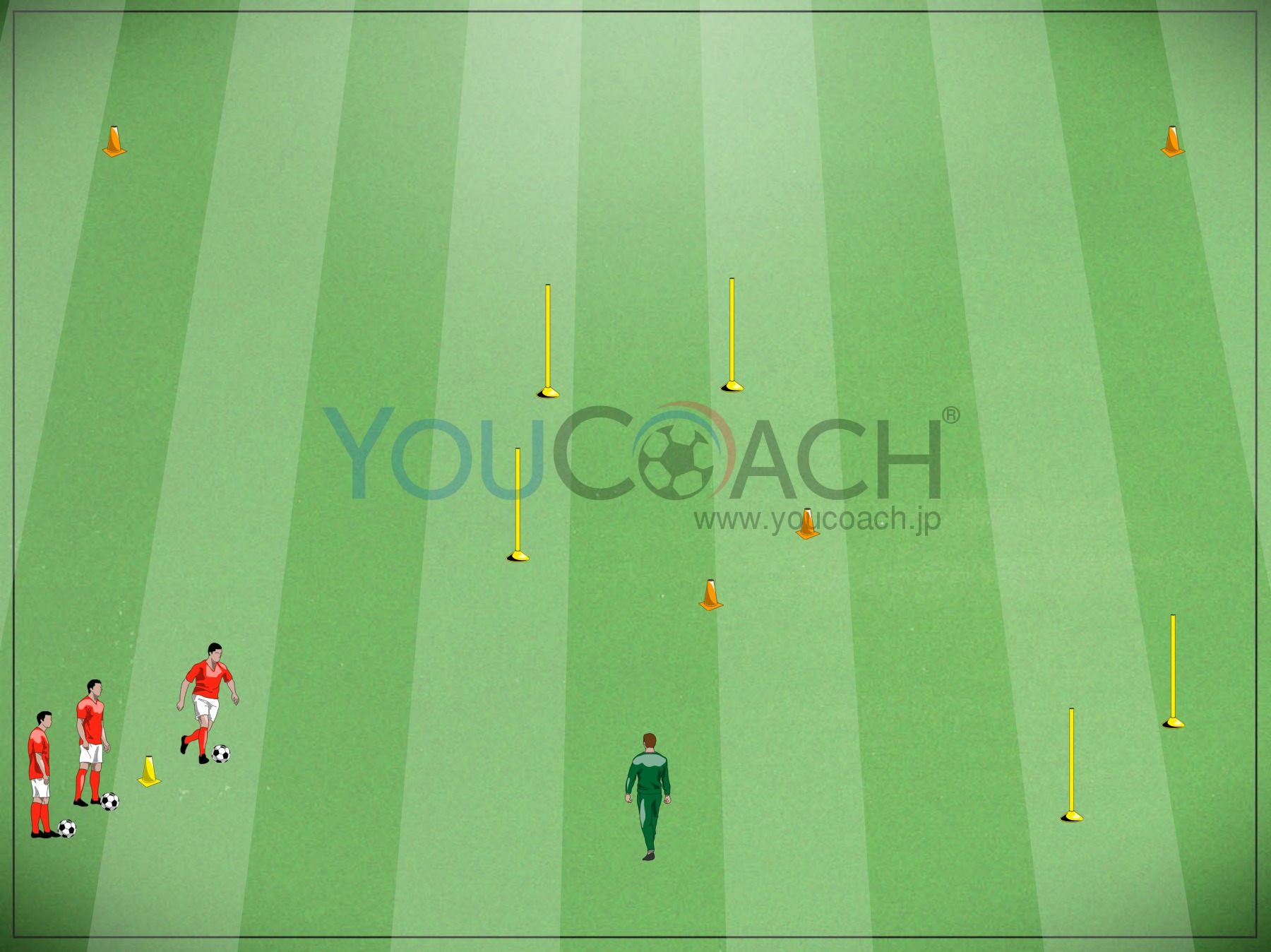 ボール扱い - ボール運びと狙いを定めたパスを鍛えるトレーニングメニューです -