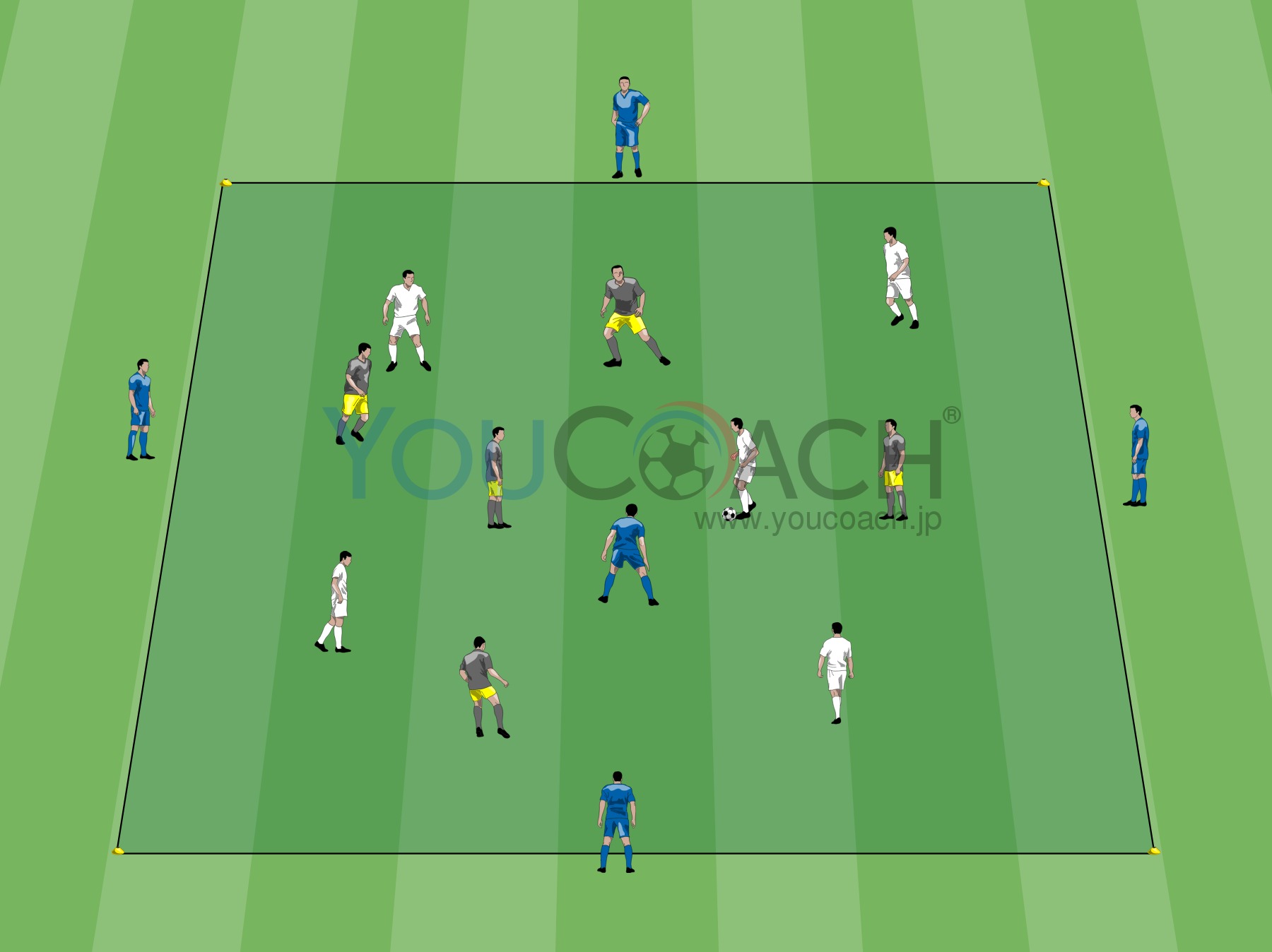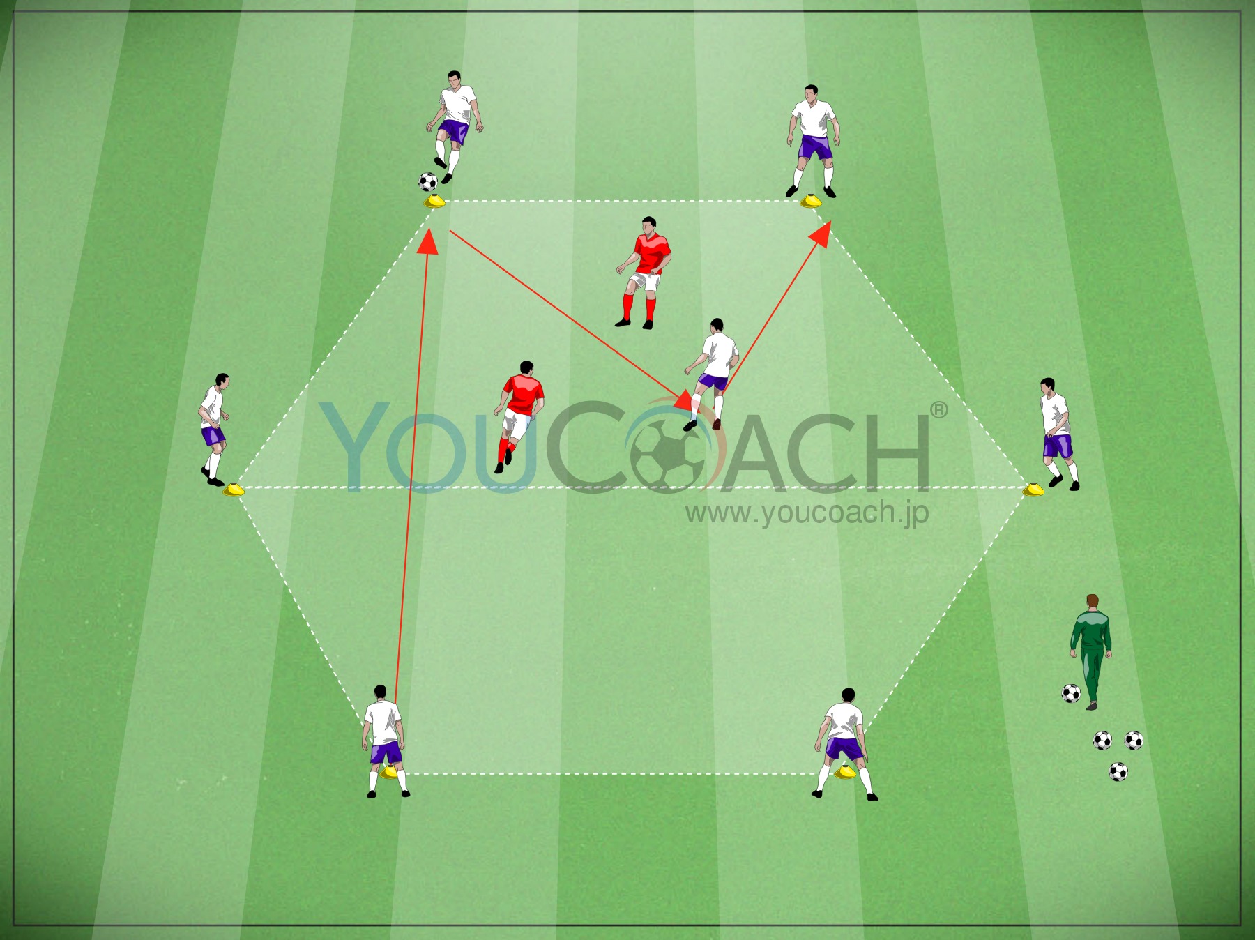 ボールポゼッション - 外のフリーマンを加えて数的優位の状況でポゼッショントレーニング -