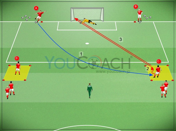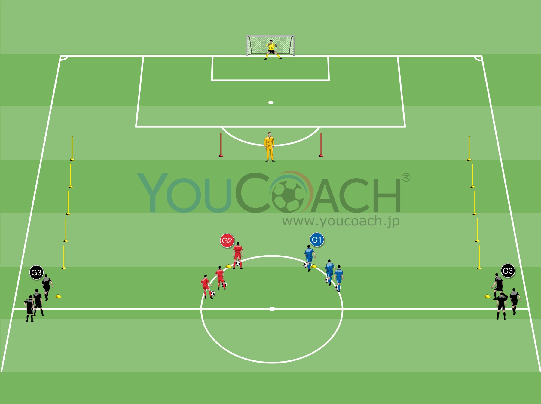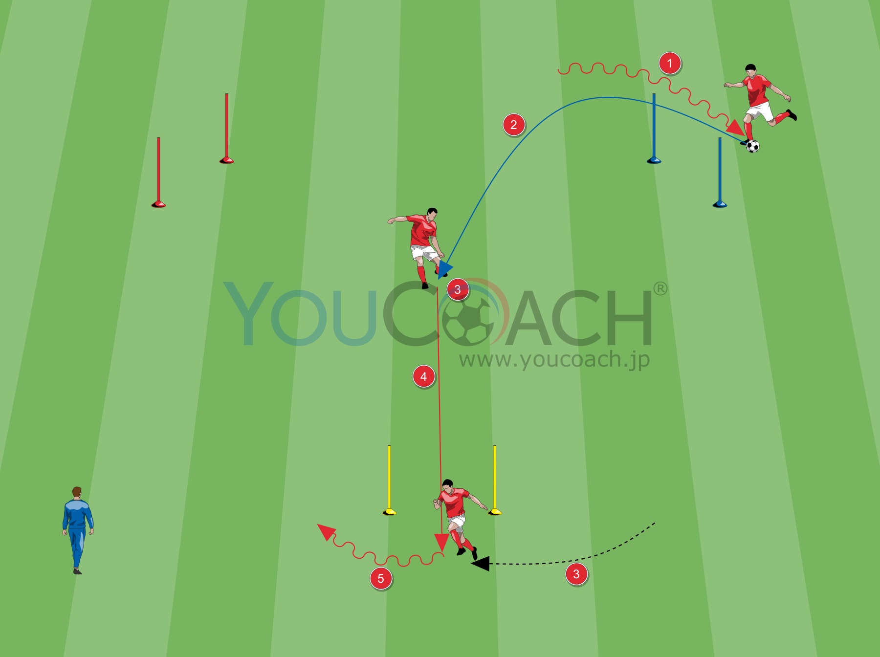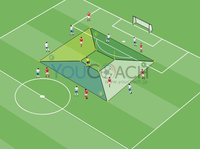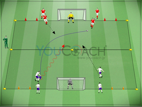 ロングパス - サイドチェンジと数的有利のシチュエーションでのボールポゼッションを磨くのに適したトレーニング