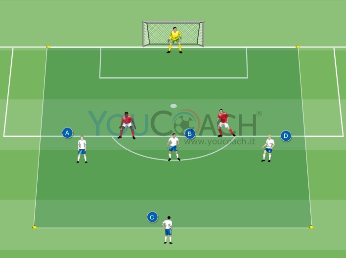 可動性 - 簡略化された、ゴールへシュートを打つためのCFの壁パスと3対2の状況 -