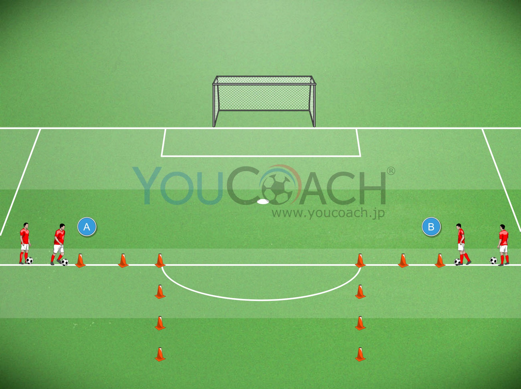 有酸素性持久力 - ボール運び、ドリブル突破、シュートなど複数のスキルを一度に行うトレーニングメニューです -