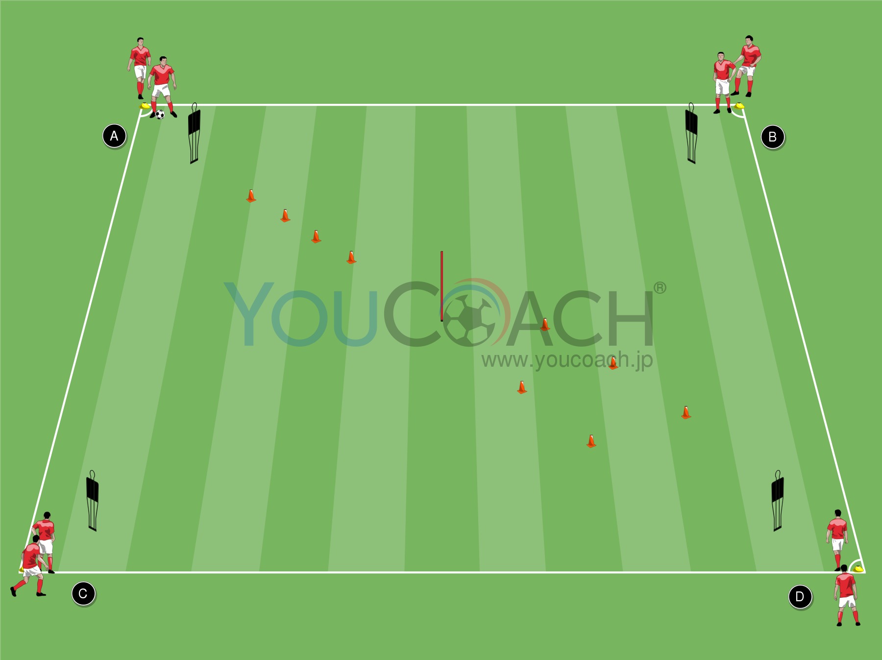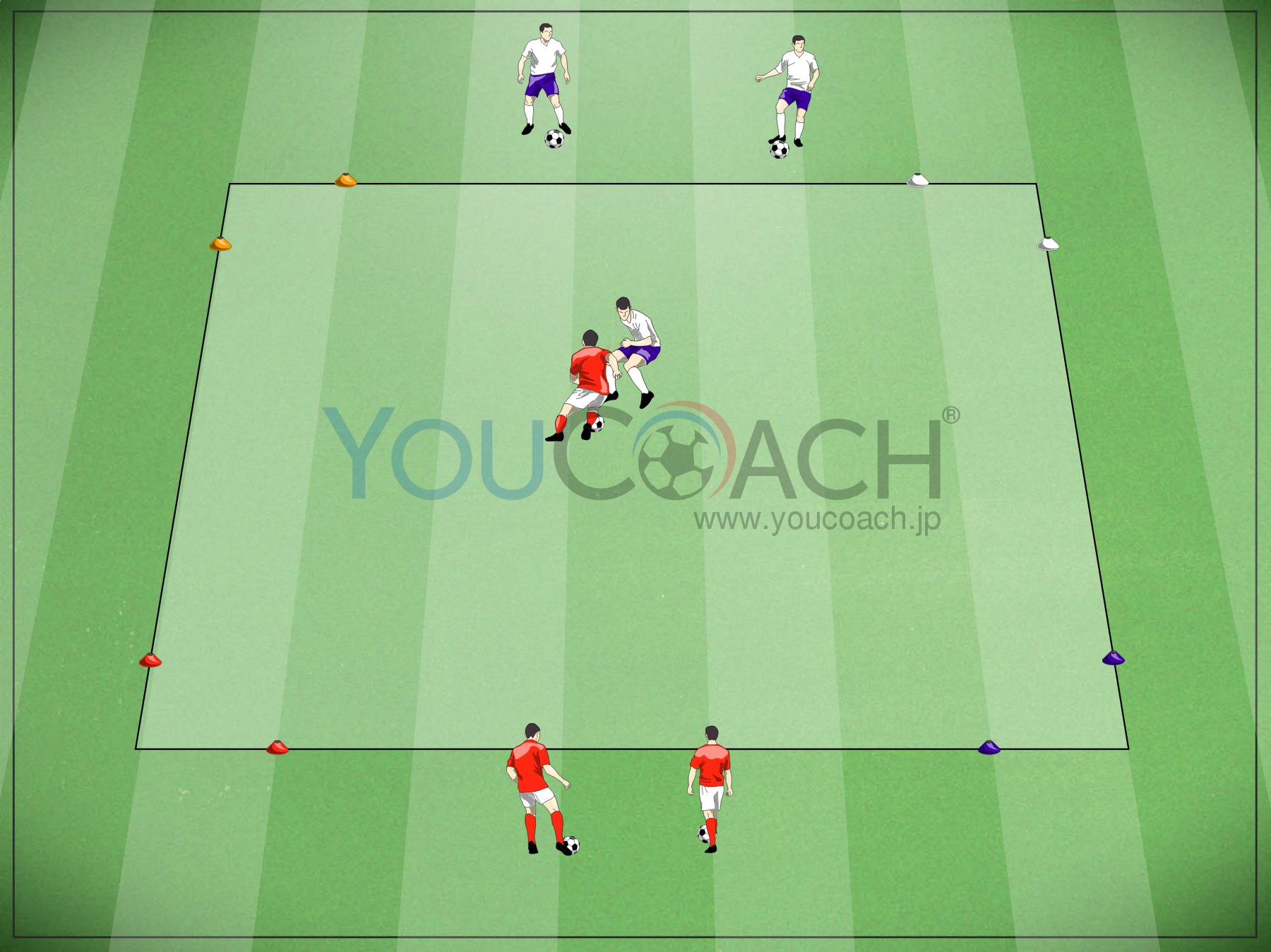 1対1 - 1対1がテーマのプレーエリアからポゼッションへ展開していく試合形式トレーニングです -