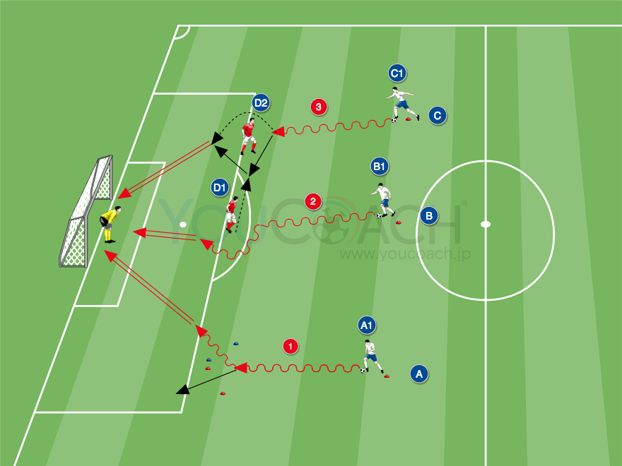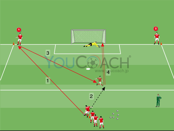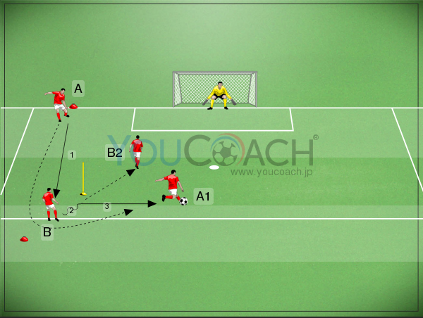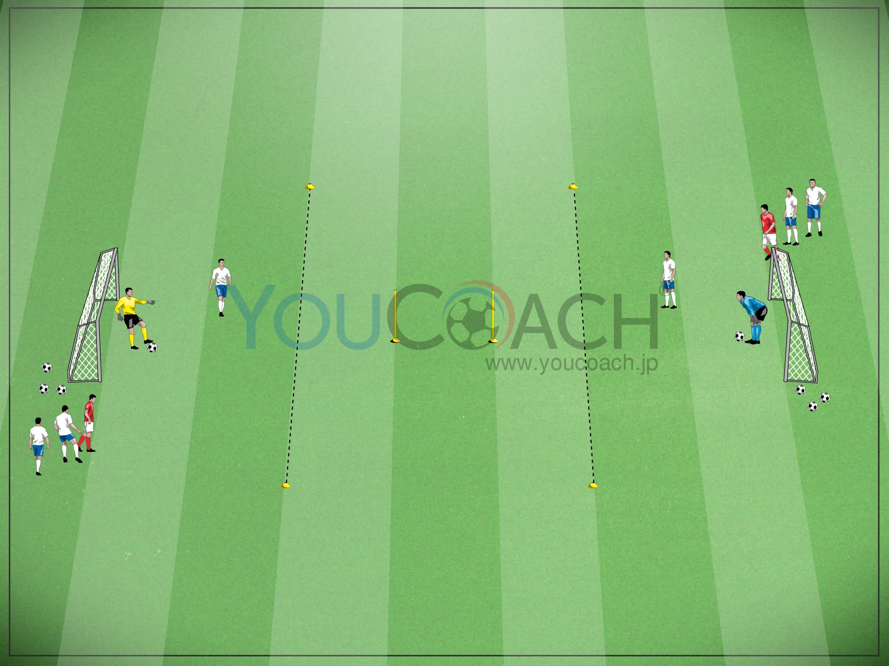 枠内シュート - 1対1のシチュエーションを通じてシュートスキル、決断力の早さを高めるトレーニングです -