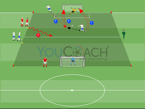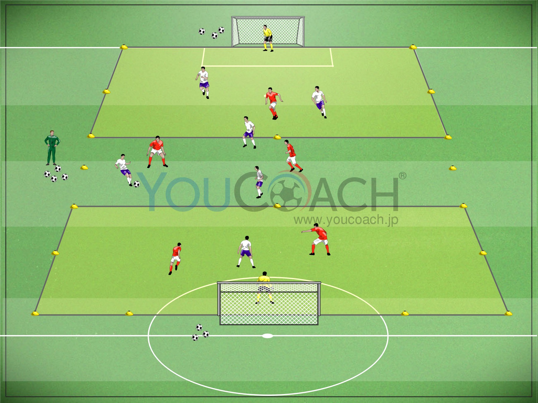 マークを外す - CFのマークを外す動きとエリア内の3人目(MF)の動き出しを強化するスモール サイド ゲーム -