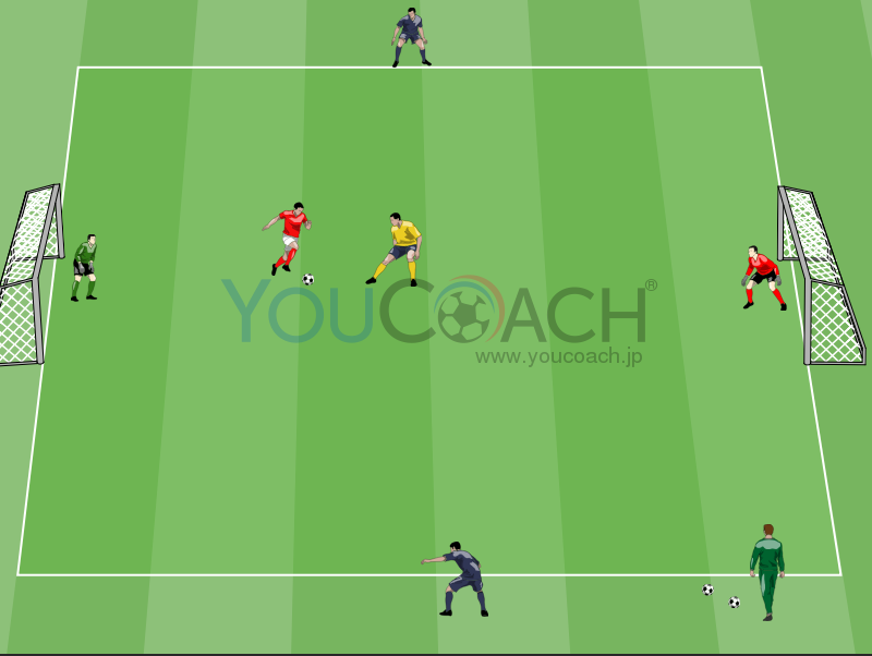 スモール サイド ゲーム: 数的優位の状況でゴールを狙え