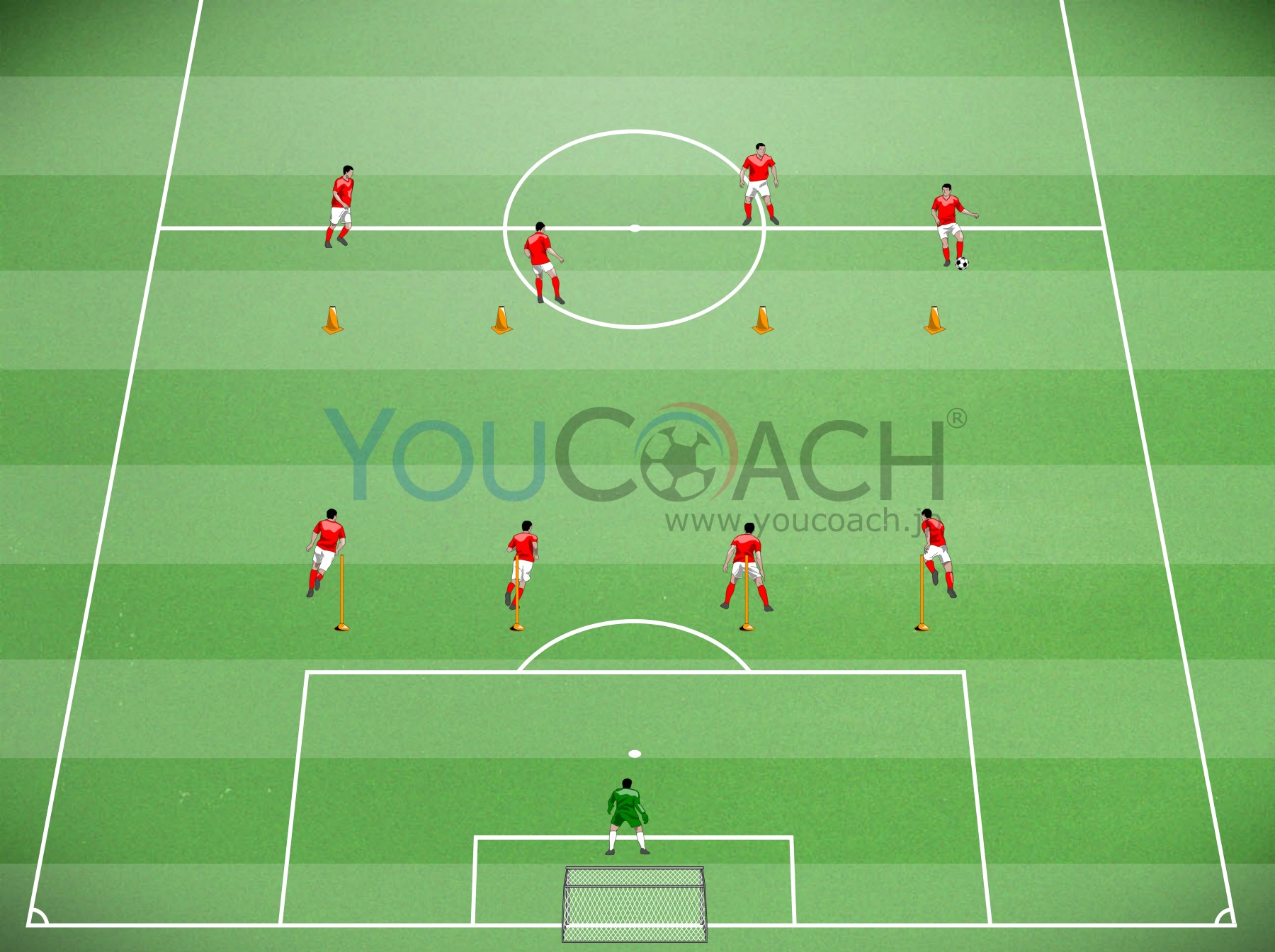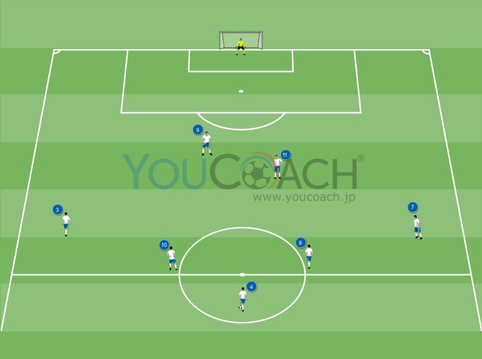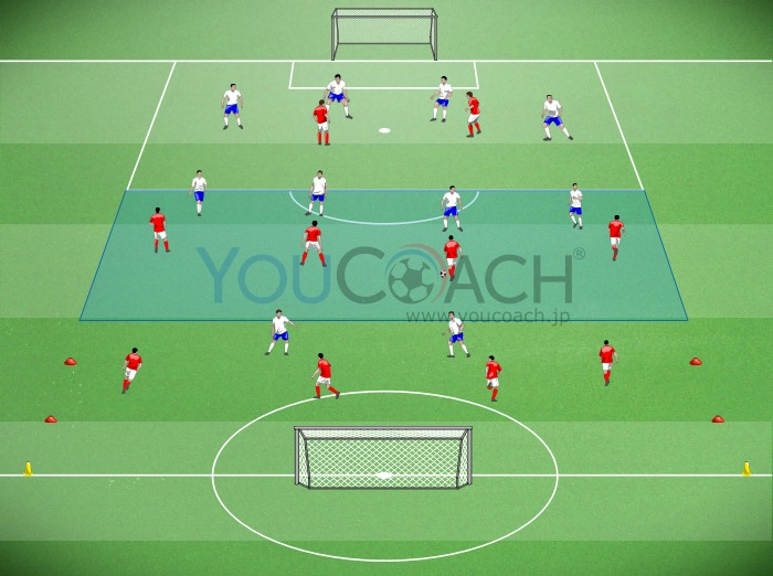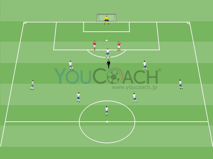 侵入 - 4-4-2のシステムでオフェンスのサポートができるようにミッドフィルダーをトレーニングさせましょう